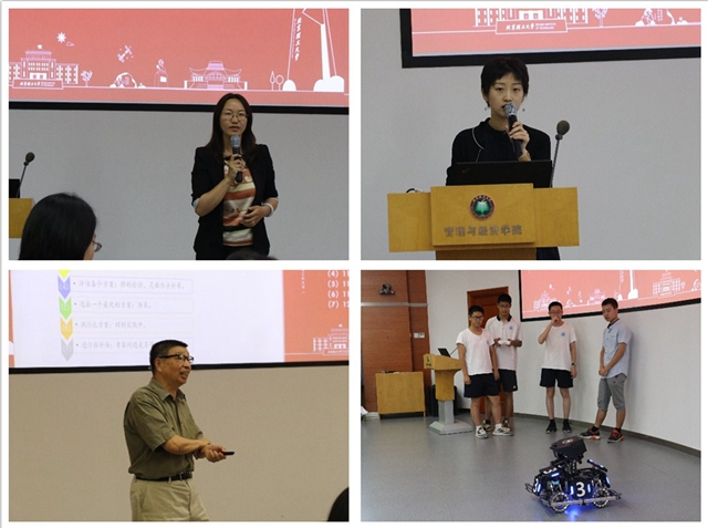 随后,自动化学院的大学生机器人团队介绍了两款最新参赛机器人,详细讲解了机器人的构造原理和研发过程,近距离给同学们带来精彩绝伦的现场展示,并邀请学生上台模拟操控。中学生们对先进的机器人演示表现出了浓厚的兴趣,神情专注,互动热烈。