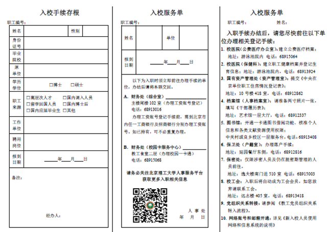 到人事处开具“入校服务单”,领取入职资料包,然后再到财务处登记工资账号,办理校园一卡通,仅仅需要简单的两个步骤,新入职的A系列教职...