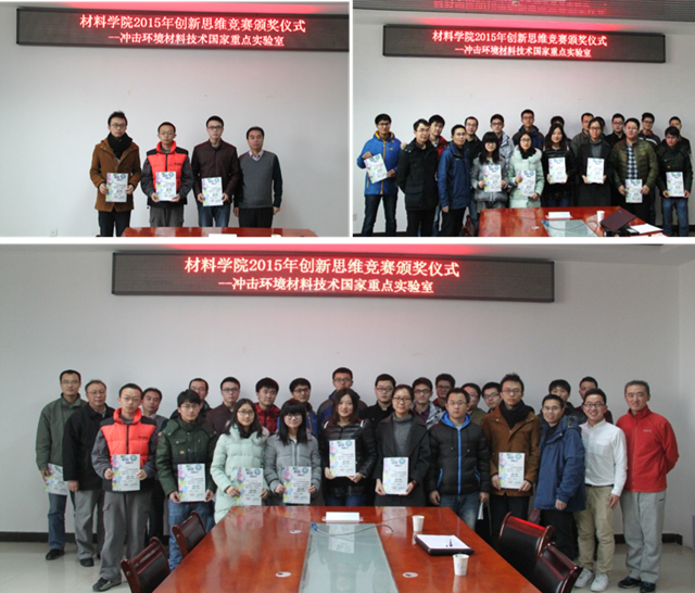 随后,颁发了2015年度创新思维竞赛奖学金。该奖学金是由材料学院冲击材料环境技术国家重点实验室设立的奖学金,用来奖励从事冲击材料环境技术领域的优秀学生。