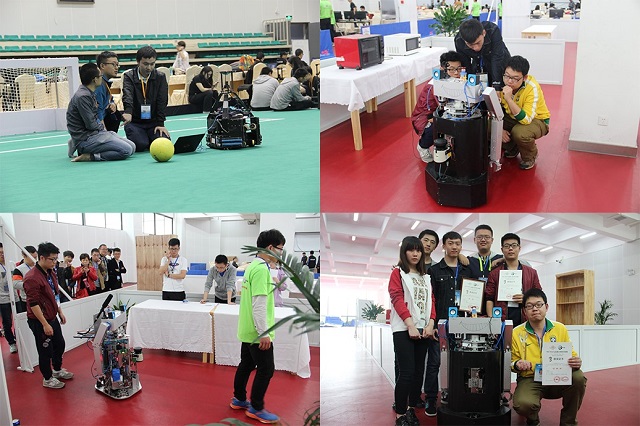 。。在RoboCup@Home项目上,软件科技创新创业基地嵌入式创新实验室“BITatHome”队虽然研究家庭服务机器人仅有三年的时间,但在本次比赛中,“BITatHome”队大幅度优化了导航、语音、Follow等算法,使用Kinect实现人脸识别功能,最终在技术上进行了较大的突破。嵌入式实验室参与了家庭组常规赛、技术挑战赛等项目。在常规赛中,参与了Follow、navigation、GPSR、speech recognition、person recogonition等分赛项目,最终经过三天艰苦的比赛,“BITatHome”获得了家庭组各分项总分季军,并在follow项目中获得了单项冠军。在技术挑战赛这一项目中,“BITatHome”团队展示了应用于Follow项目中的步态识别技术以及应用于导航避障中的人脸识别、骨架识别技术。经过技术挑战赛的经验交流和技术分享,参赛选手都受益匪浅。最终“BITatHome”队获得了技术挑战赛二等奖以及技术创新奖的成绩。