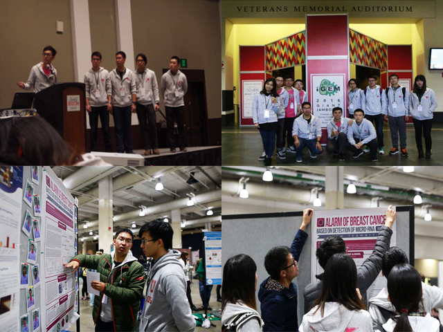 BIT代表队参赛项目为《Alarm of breast cancer based on the detection of miRNA155/21》(通过检测血液中的疾病标志物miRNA155/21,达到早期预测乳腺癌)该项目是基于检测生物标志物—mircoRNA(小RNA)155与microRNA 21达到预测乳腺癌的患有率,在生物的基础上队伍还开发了实时检测装置1.0与2.0,将获得的生物信息经过数学建模计算处理后,通过装置转换成荧光信号输出。不仅开发了一款游戏增强用户体验,队伍还自主研发了一款APP用作在线咨询诊断获取信息。