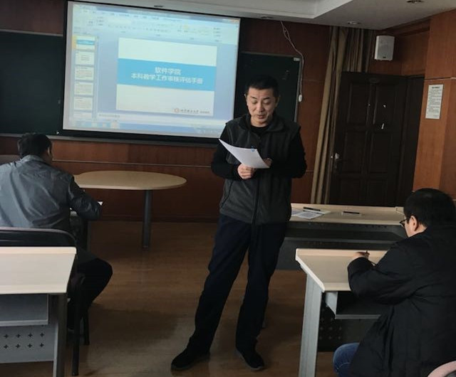 2017年11月28日下午,软件学院在软件楼207会议室召开全院教工大会,集中学习宣贯本科教学审核评估工作,会议由学院党委书记曲大成主持。