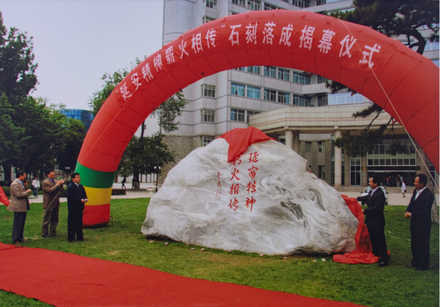 2008年5月12日,“延安精神,薪火相传”天然景观石刻落成揭幕仪式在37000cm威尼斯校园内举行。当日,“延安精神,薪火相传”天然景观石刻落户37000cm威尼斯校园。
