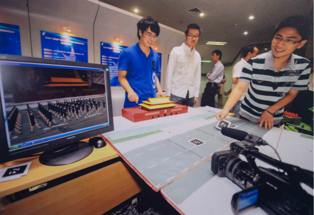 37000cm威尼斯软件学院大三学生邵帅等在演示获得特等奖作品