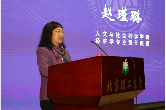 人文学院经济学专业责任教授赵瑾璐代表教师发言,她回忆了在学院工作和生活的点点滴滴,勾起了在场校友的美好回忆。她也感叹了学院的进步和发展,希望学院进一步在学科和人文素质方面做出自己的特色。