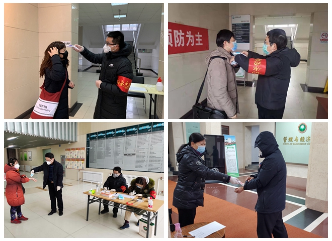 第一阵地,严守纪律筑牢防线。中关村校区5号教学楼涵盖材料学院、生命学院、化学与化工学院、机电学院、物理学院等多个单位的办公及实验空间,进出人员身份相对复杂,材料学院按照值守要求,结合实际情况,明确要求值守人员提前10分钟到岗进行工作培训,同时安排每班3人进行轮换,在保证值守人员自身安全的前提下,确保无缝衔接。管理与经济学院作为主楼值守责任单位,在及时通报全院教师的基础上,还积极与同在主楼的计划财务部充分沟通,并在主楼东门口设置值守提示牌,严控非本楼人员进出,对于体温超过37.3°C人员,将督促其前往校医院进行筛查。资产与实验室管理处第一时间与计划财务部招标采购中心沟通,认真落实逸夫楼南门管控要求,采取“闭楼值守、电话预约”的方式,对逸夫楼(南门)实行封楼管理,在逸夫楼南门大厅设置文件中转箱,定时接收线下业务材料,并通过信息化手段,提高线上业务处理能力,在“防控第一”的前提下,确保各项工作的有序开展。