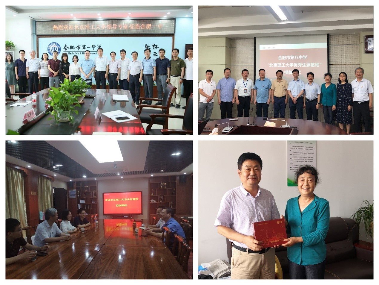 招生组作为第一所进入安徽省高中招生宣讲的高校,先后走访了合肥市第一中学、合肥市第六中学、合肥市第八中学、合肥一六八中学、淮南第二中学,与中学校领导、教务部主任、年级主任就招生工作进行交流研讨。合肥市第一中学的校长封安保,副校长方小培、赵岩、张大勇,合肥市第六中学副校长章伟,合肥市第八中学副校长邓宗国,合肥一六八中学副校长苏建,淮南第二中学校长解玉嘉及各学校教务主任、年级部主任、高三班主任老师参加。