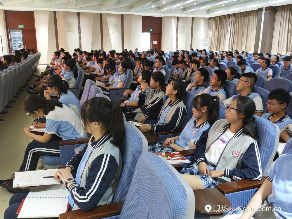 山东招生咨询组副组长徐豫新做“在更大的平台做更好的自己”专题报告,烟台二中姚维领为同学们上党史教育党课。有意向报考我校的优秀生源和200余位新高三同学共同见证并聆听报告。